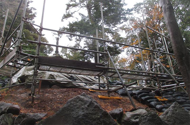 崩落石材回収・石垣解体中