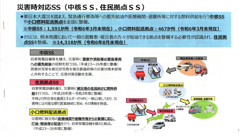 舞谷商店は、国の指定を受け、災害時は中核SS(サービスステーション)として活動していて、緊急車両への給油を優先します。(注:住民拠点SSと中核SSがあり、中核SSは大容量の自家発電機を備えているスタンド)