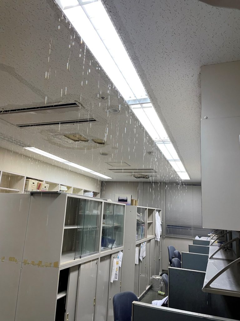 自分たちの医局(仕事部屋)はスプリンクラーが働いて水浸しになり、本がバタバタと倒れていました。