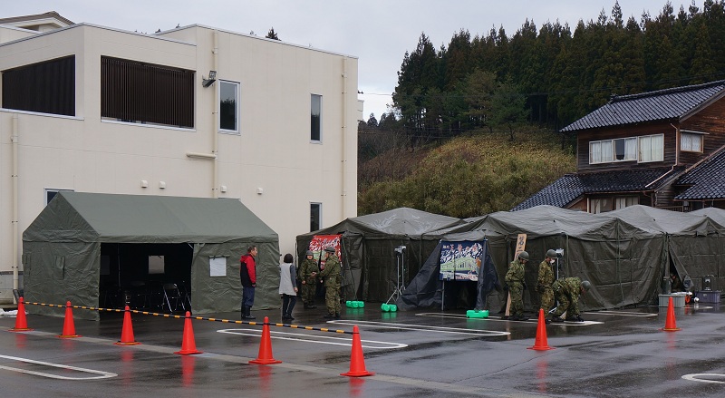 七尾から、羽咋から、遠いところは穴水の人も来ていました。自衛隊の人が石川県の地図を書いて、どこから来たかシールを貼っていました。