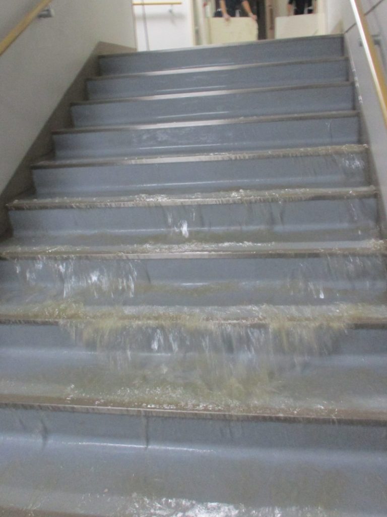現在はきれいになっているので、なかなか想像できないかもしれませんが、天井の崩落や壁の崩落も、院内の至る所でありました。中でも大変だったのは、上下に通る排水管の損傷で、約70トンの水がいっぺんに漏れ出てしまったことです。低い場所に水が溜まって、池の中を歩くような状況で、さらに暖房が使えないので、職員の足元が常に冷たい状態でした。