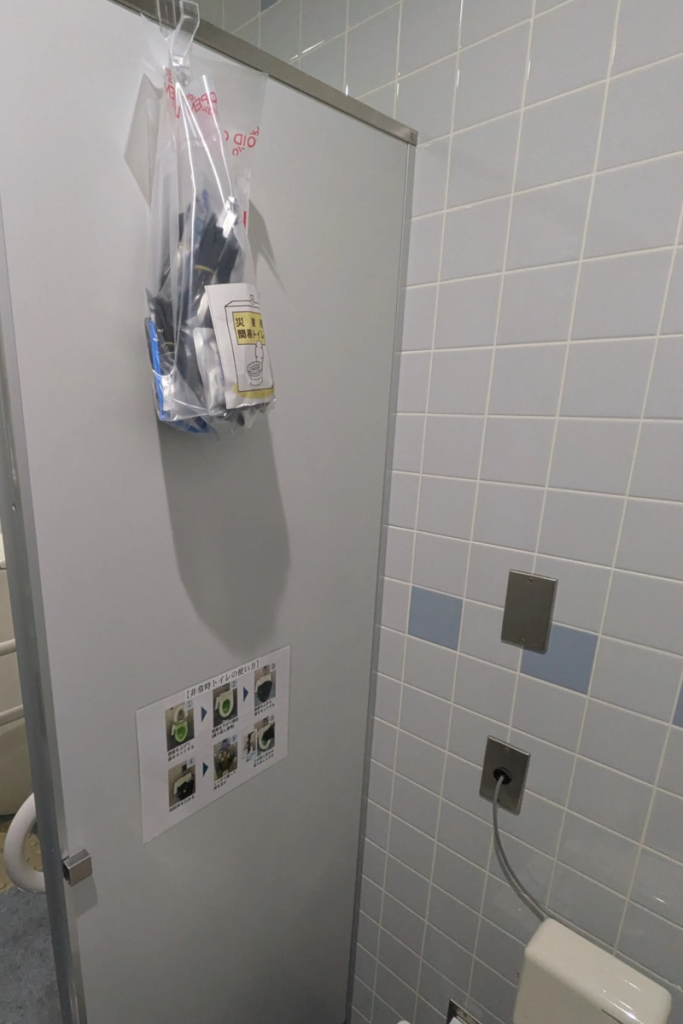 トイレも、障害者トイレなど比較的床のスペースが広いところで、簡易トイレを使って用を足していました。ただ、使用するのが元気な方ばかりではなく、足腰に負担が大きい方、自力でトイレに行けない方が多いので、とても苦しい状況でした。