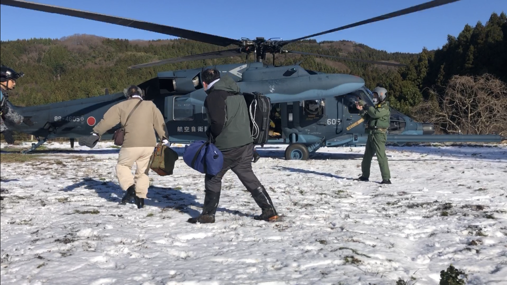 孤立集落には、プロジェクトチームを作る前の初期段階から行っていたので、1月の2日か3日には救助が入っていたと思います。最初のころは、孤立集落内の全員を一気に救助するのは困難だったので、集落の中でも、怪我をしている人、高齢者で今すぐ病院に行かないといけないような人のみをヘリで緊急搬送する形で救助していました。