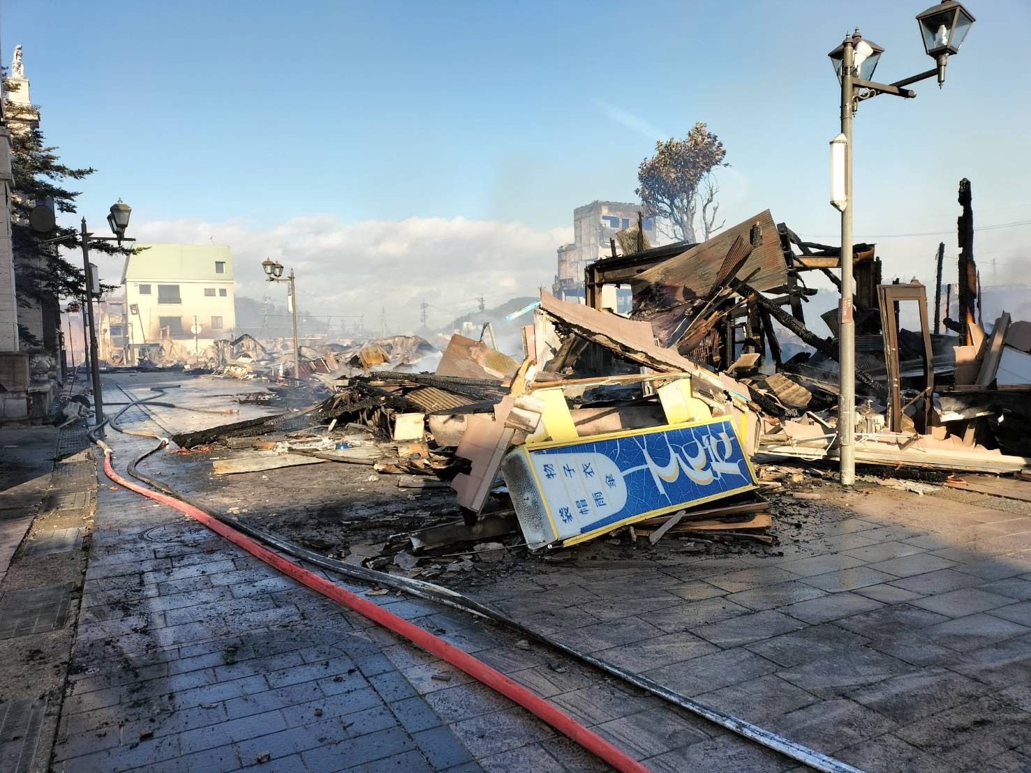 元日の夕方4時なので寒かったですし、周りはもう暗くなりかけていました。ただ、その時雨が降っていなかったのが幸いです。天気がすごく良かったので。火事の様子は、正直一本奥の通りで起きていたので、こっちまで来るとは思っていませんでした。だから火事の心配はなかったです。それよりも、目の前が海なので、大津波警報がバンバン鳴っていて、「津波が来る、津波が来る」と言われていたので、そっちの方が怖かったです。