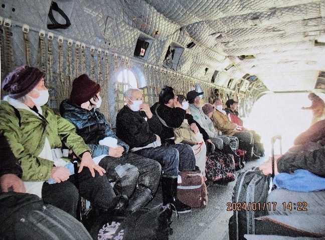 ヘリコプターで行ったのは8日の日からですね。最初、新保集落の方が、正月に地震の揺れでお母さんを抱えて外に出たらしいんですけど、つまずいて、お母さんがあばらかどこかを痛めたらしいんですね。それが1週間ほど経ったところで出血しだして、なんとかならんかということで、それが自衛隊を最初に呼んだ方ですね。8日にお願いしたんですけど、天候が悪いからということで、8日は飛べず、9日の夕方にヘリで1人運ばれています。