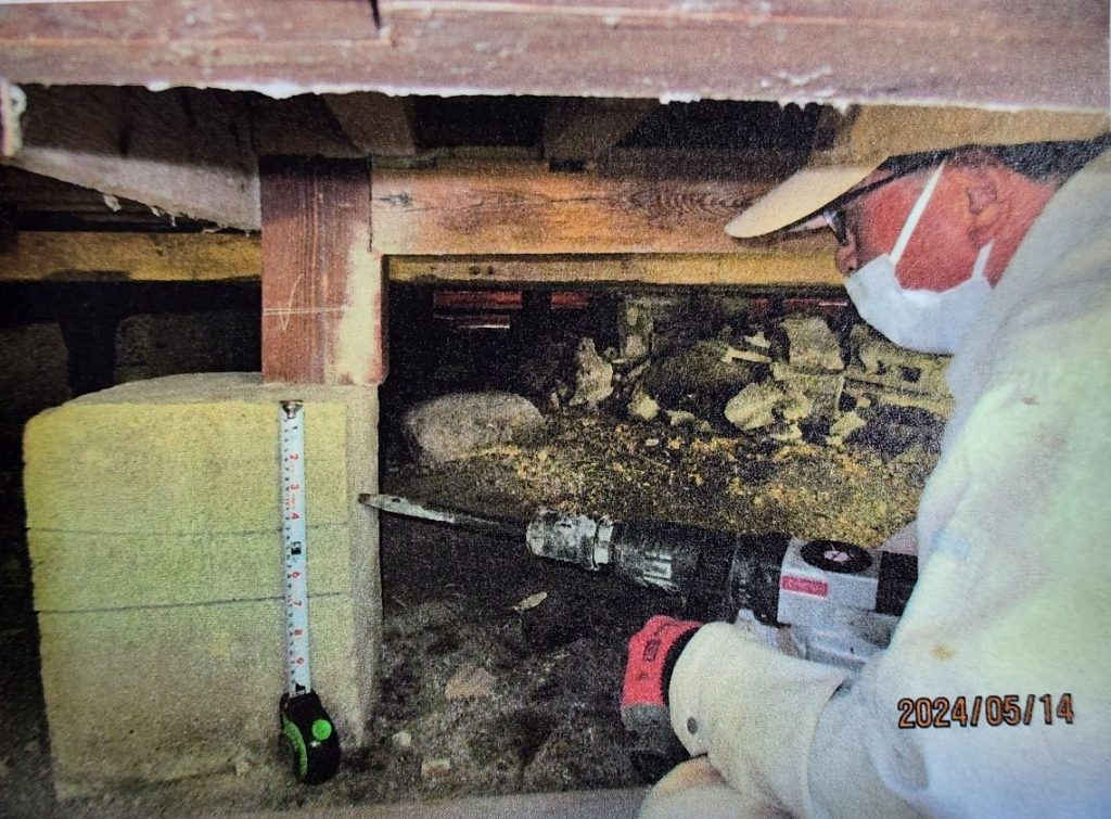 床下、床を直すのに、水切りにするのに2ヶ月ほど床下に入ってましたから。基本作業は一人でしました。応援を頼みたかったんですけど誰もいないですからね。特別大変とは思わなかったですけどね。大工仕事は本職ですから、やるしかない。